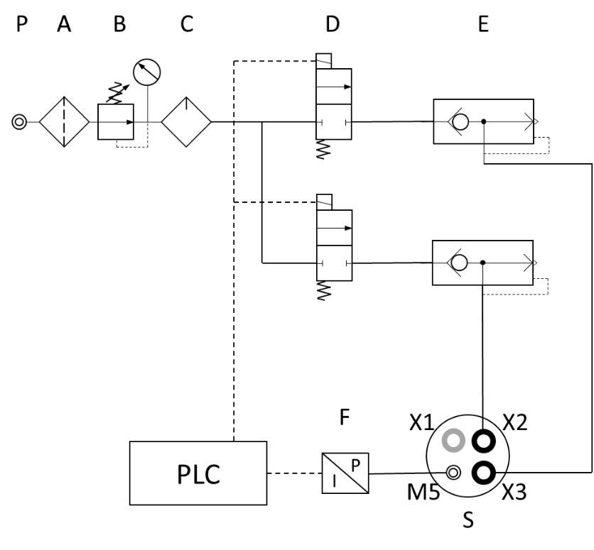 | P | वायु दाब स्रोत |